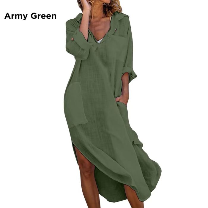 This loose long shirt is a staple in your everyday wardrobe. Made from soft fabric, it features a classic collar, long sleeves, and a relaxed fit that flatters all body types. It can be paired with jeans or leggings, or worn alone for a stylish yet practical look. It's available in a range of muted and bold colors to suit your taste and mood.Today’s Deal is Seamless Bodysuit for Slimming and Concealing Flabby Skin