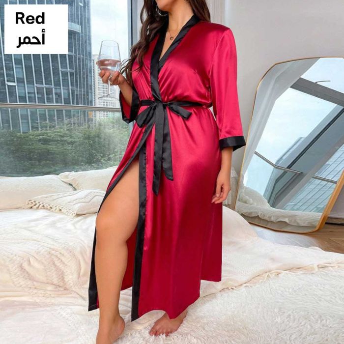 - Plain Loose Long Sleeve Satin Robe For Women