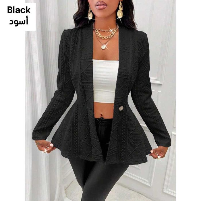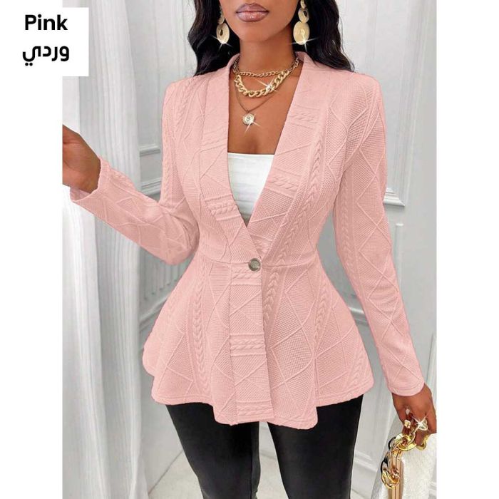 Embrace a sophisticated look that combines simplicity with an artistic touch with this solid color jacket featuring an embossed pattern that adds depth and elegance. It boasts long sleeves, a classic collar, and a large front button for a practical yet modern feel. The fabric provides light warmth, while the cut allows for easy pairing with jeans or skirts. Perfect for work, casual outings, or stylish everyday looks.Today’s Deal is Plain Raised Pattern Long Sleeves Jacket For Women