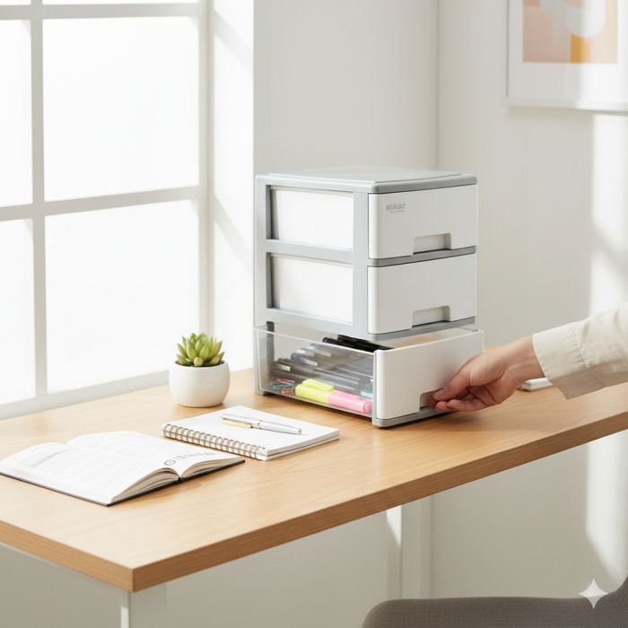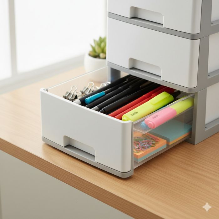 Keep your desk organized and clutter-free with ease. This storage box gives you ample space to organize your office supplies, from pens to A4 paper. The convenient drawer design ensures quick access to what you need without wasting time searching, and the drop-proof feature adds security.