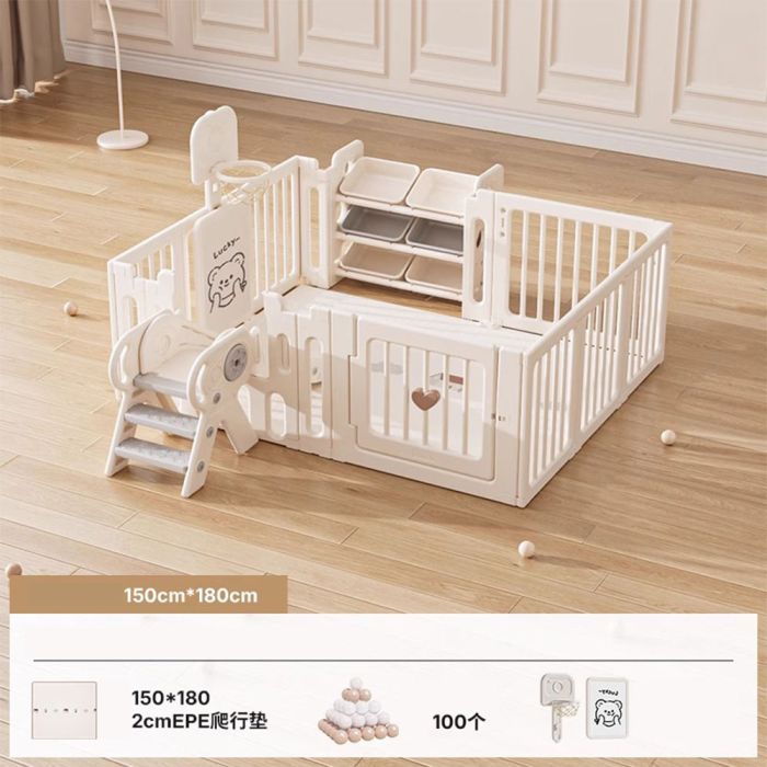- Plastic Fence with Mat Slide Basketball Hoop and Toy Organizer 180 x 150 cm
