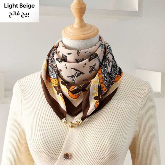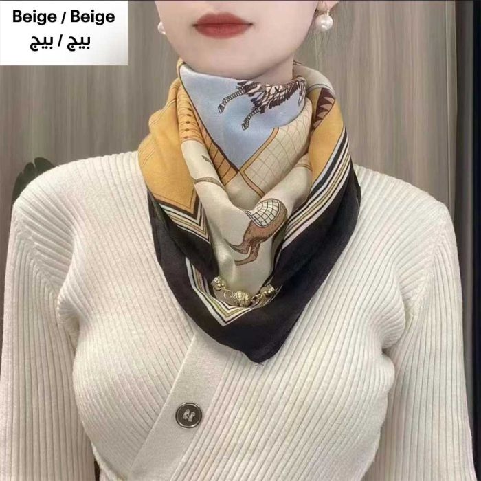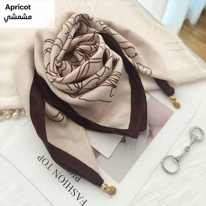 - Polyester Colorful Design Scarf for Women 65 x 65 cm - Apricot