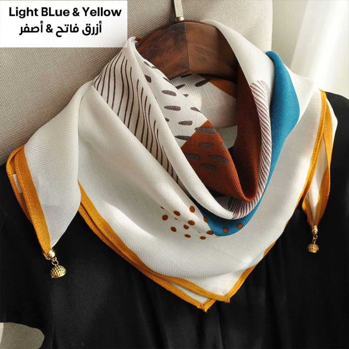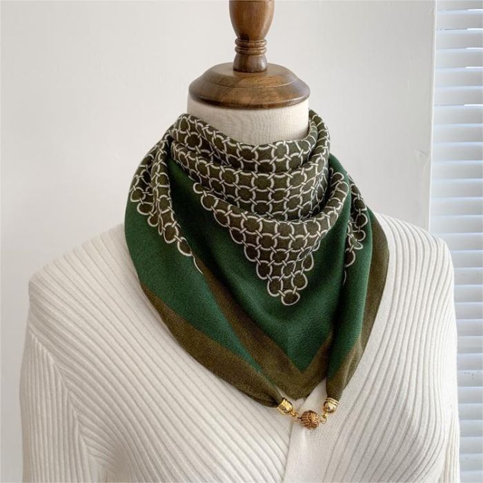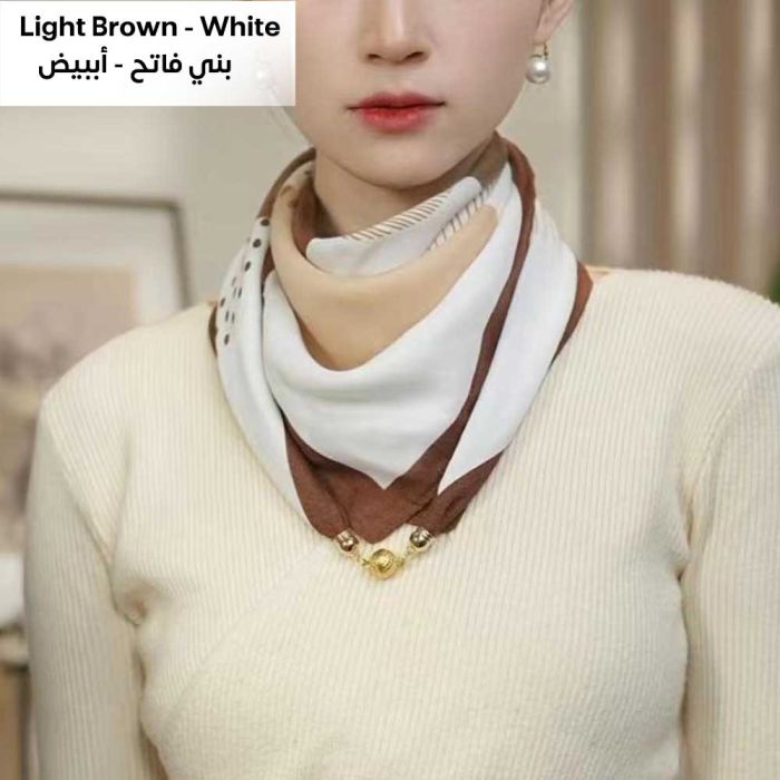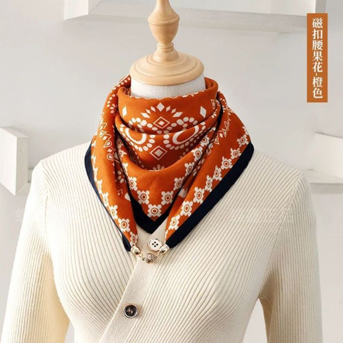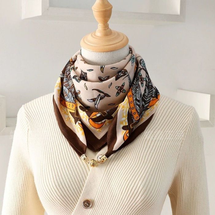 Silky-feel scarf with a magnetic clasp. Made from soft polyester for a luxurious, sophisticated feel, it provides warmth and elegance. The innovative magnetic clasp allows you to secure the scarf instantly and effortlessly. This versatile scarf can be worn as a tie, hair accessory, or bag decoration, instantly elevating any look, whether formal or casual. Its soft, skin-friendly material makes it comfortable to wear all day long.Today's Deal is Polyester Colorful Design Scarf for Women 65 x 65 cm