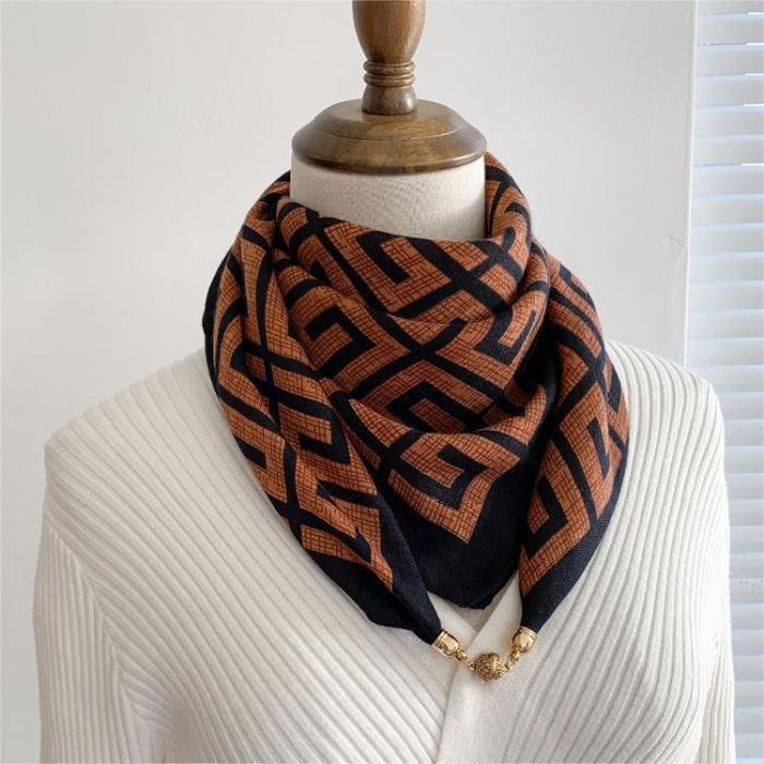 Silky-feel scarf with a magnetic clasp. Made from soft polyester for a luxurious, sophisticated feel, it provides warmth and elegance. The innovative magnetic clasp allows you to secure the scarf instantly and effortlessly. This versatile scarf can be worn as a tie, hair accessory, or bag decoration, instantly elevating any look, whether formal or casual. Its soft, skin-friendly material makes it comfortable to wear all day long.Today's Deal is Polyester G Design Scarf for Women 65 x 65 cm