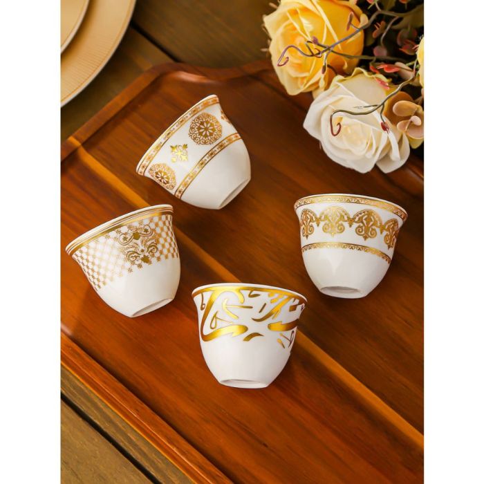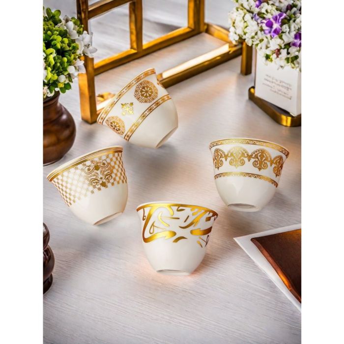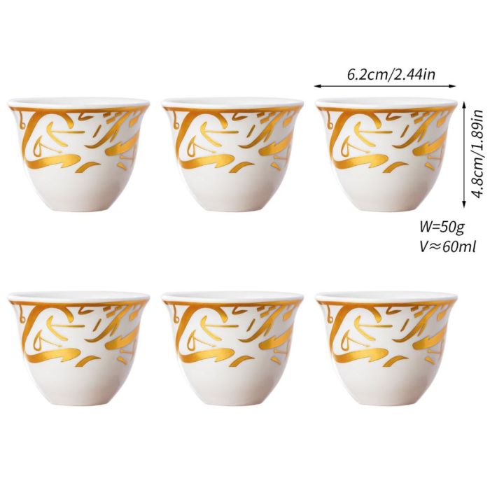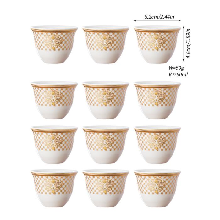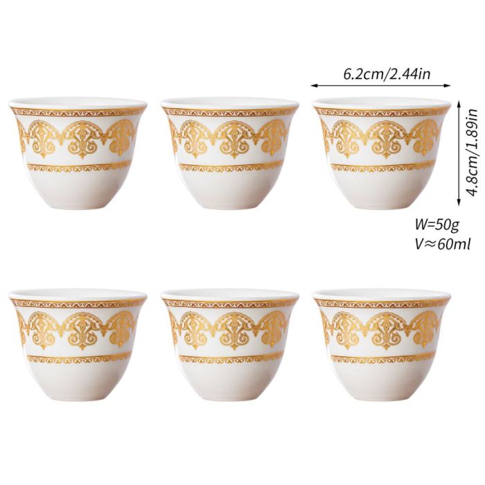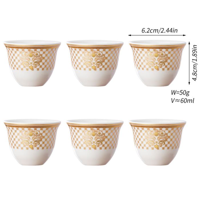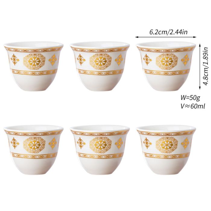 This Porcelain coffee cup set 60 ml made of elegant porcelain with oriental patterns, suitable for daily hospitality, and adds a refined touch to the coffee table