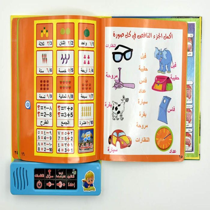 An electronic reading device for children to learn Arabic in a fun and interactive way, with clear sounds and safe materials for children aged 3 and above.