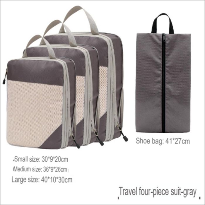 - Portable Clothes Travel Organizing Mesh Bag 4Pcs Set - Grey