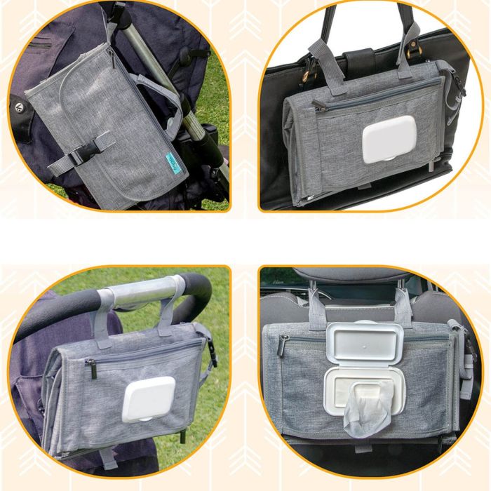 - popular smart changer pads can be easily placed in a stroller and headrest with its side strap that easily clasps which can also be easily carried on your wrist as a wristlet