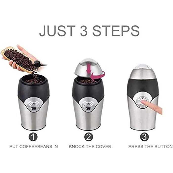 - Quick and efficient grinding with a powerful 200W motor and stainless steel blades, capable of turning whole coffee beans into fresh ground coffee in under 30 seconds.