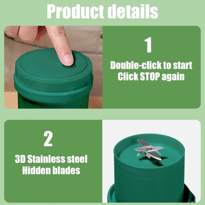 Blend fresh juice anywhere with a compact portable juicer bottle built for quick, everyday mixing on the go. The 300 ml capacity is ideal for single servings, and the rechargeable battery makes it easy to use without searching for a wall socket, whether you’re at work, in the car, or at the gym. Designed for simple daily convenience, it helps you turn fruit into a smooth drink in minutes, then packs away neatly thanks to its slim, bottle-style shape.