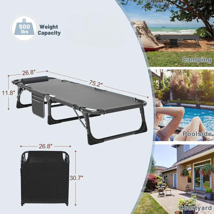 What sets this bed apart is its quick adjustment mechanism, allowing you to easily change positions without any extra tools, as you can choose the perfect setup for comfort anywhere, whether you're camping or need an extra bed at home, making it the ideal solution for comfort anytime