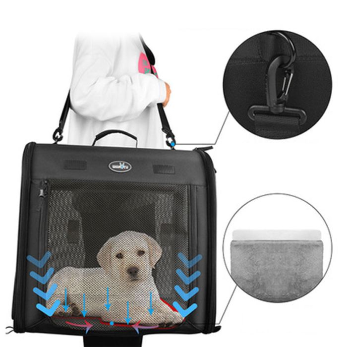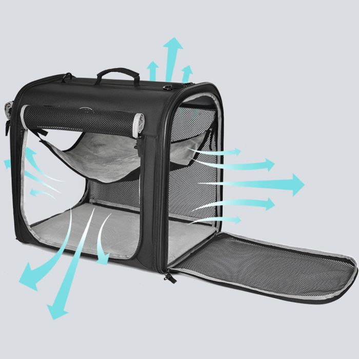 This Portable Pet House with Storage Bag and Foldable Bowl is made from durable and breathable materials, providing a safe and comfortable space for pets, ideal for travel or home use, featuring a practical design that allows easy carrying, organization, and continuous comfort