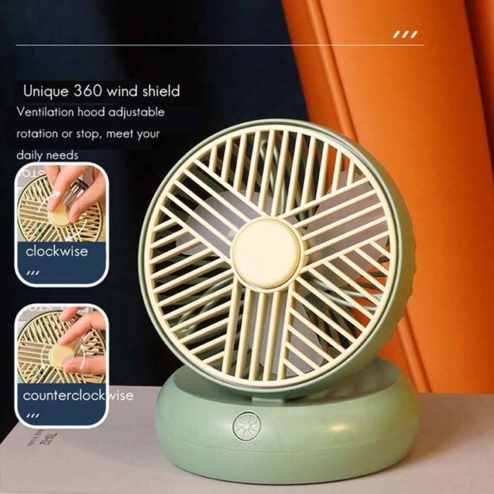 A. sleek, compact design with powerful functionality for everyday use. Featuring two adjustable wind speeds and a 360‑degree rotatable ventilation hood, it provides versatile cooling for home, office, or travel. Its 1200 mAh lithium battery offers long‑lasting use between charges, while USB charging ensures easy power access anywhere. Lightweight and portable, it’s the perfect companion to keep you cool wherever you go.
