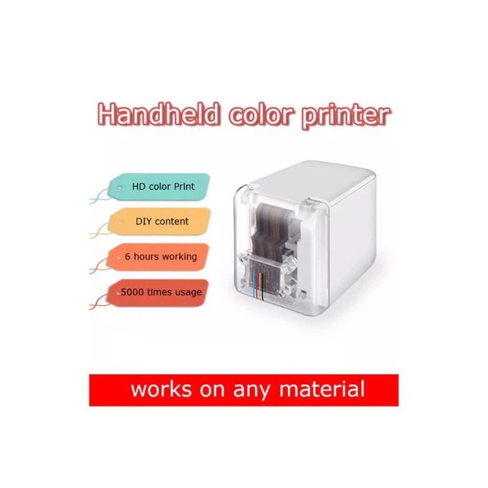Unlike other printers that only work on paper, this handheld full-color printer uses the latest printing technology and can print clearly on all materials (such as plastic, cloth, metal, leather, glass, wood, paper, textiles