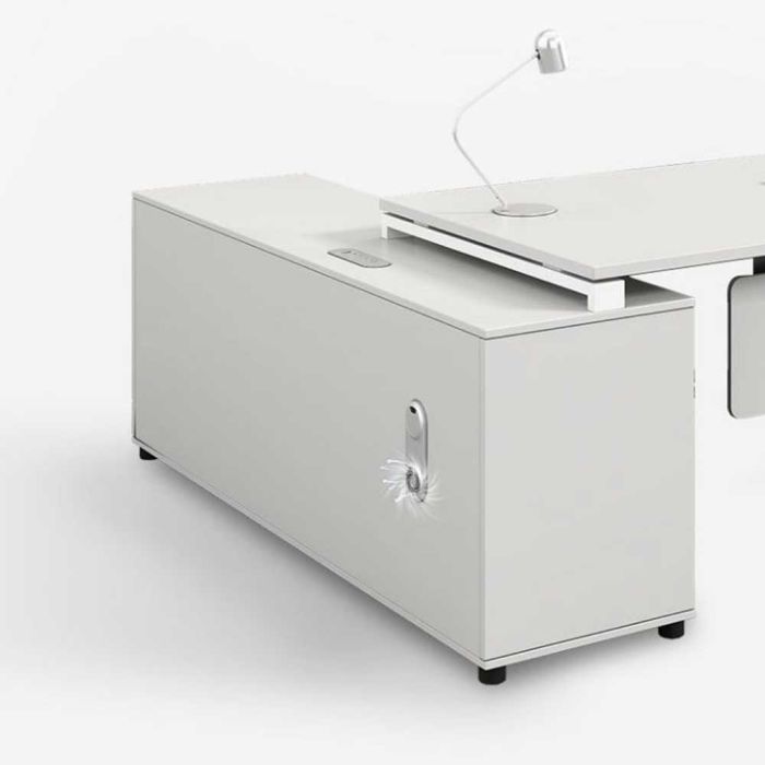 - Matching side cabinet for storage and organization support