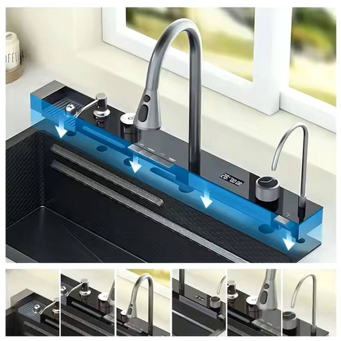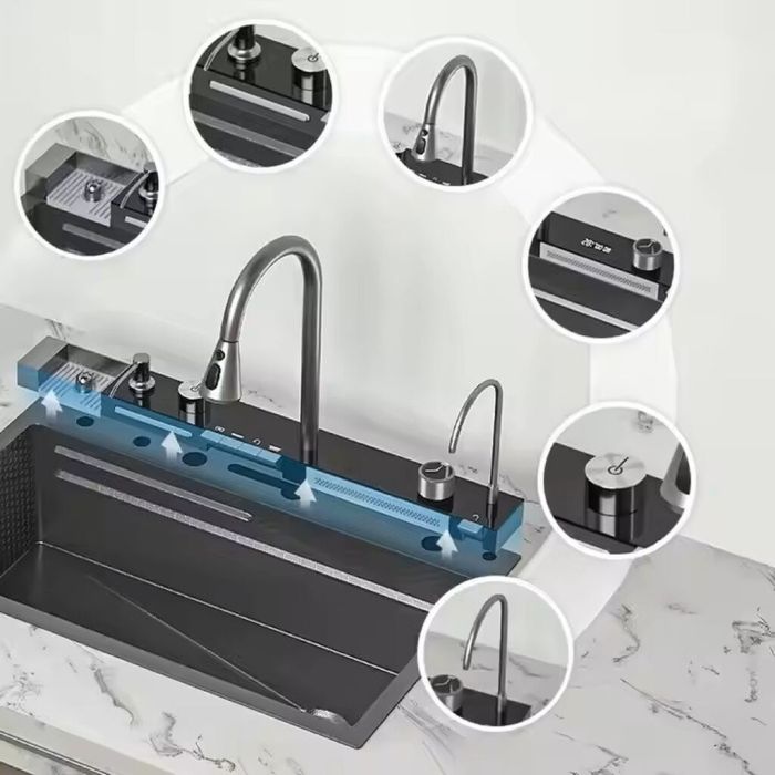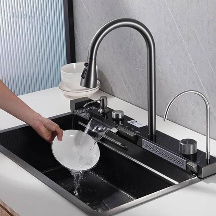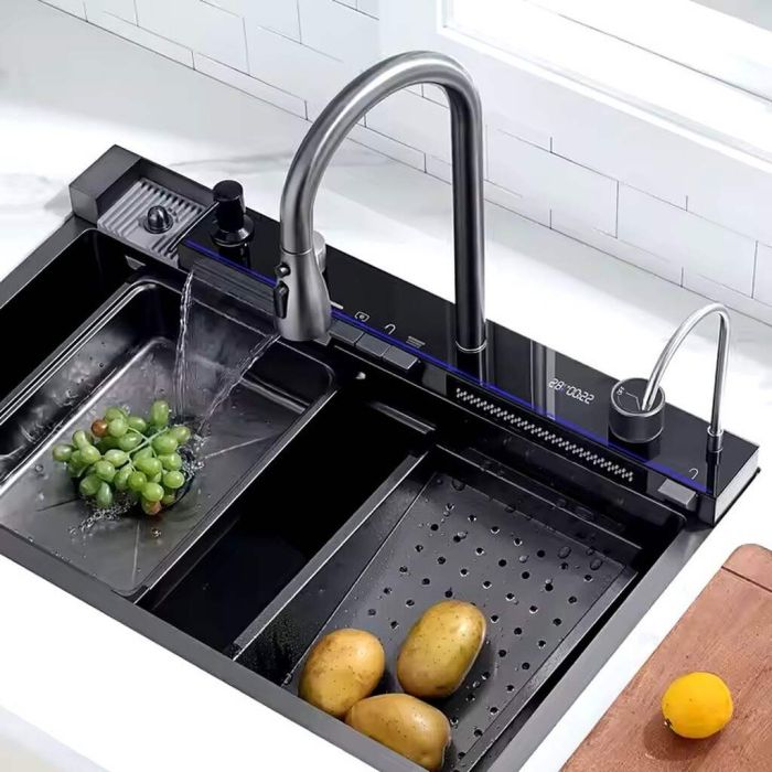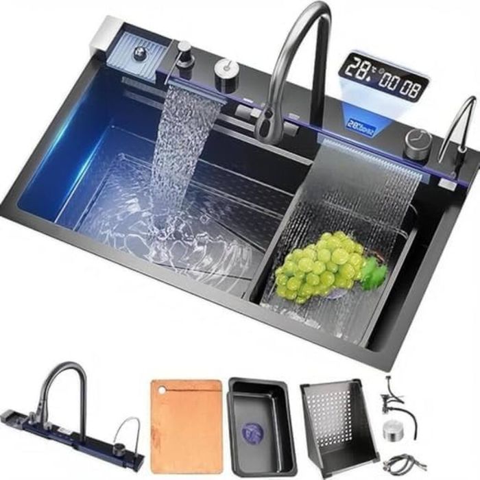 - Premium Stainless Steel Kitchen Sink with Faucet and Digital Display