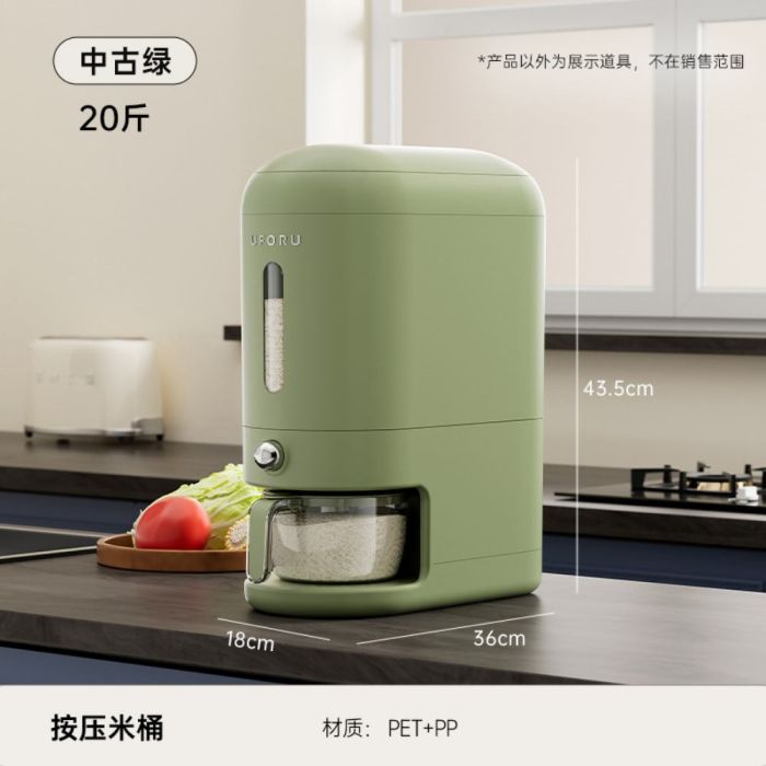 This Press Rice and Grain Dispenser Airtight made of durable food-grade materials, smooth press mechanism for controlled dispensing without mess, airtight lid protects from moisture and insects, helps maintain grain quality and keeps your kitchen neat