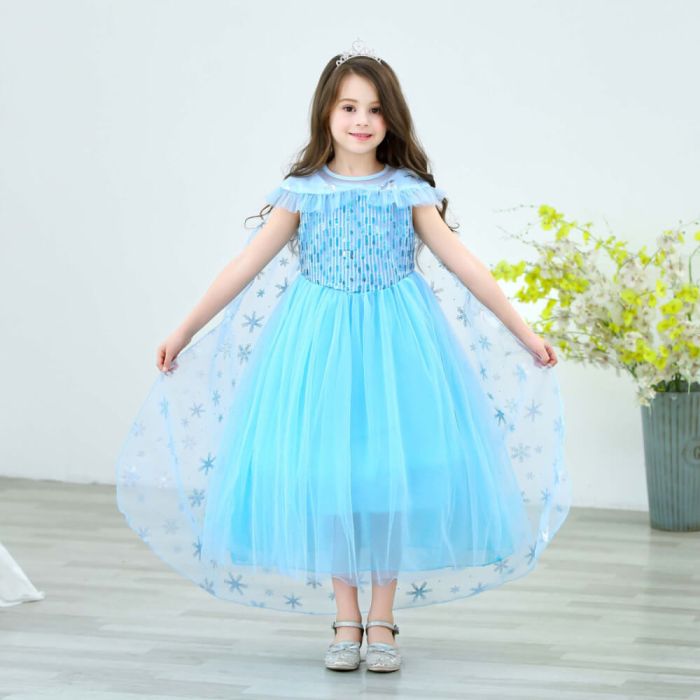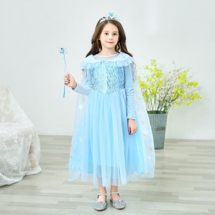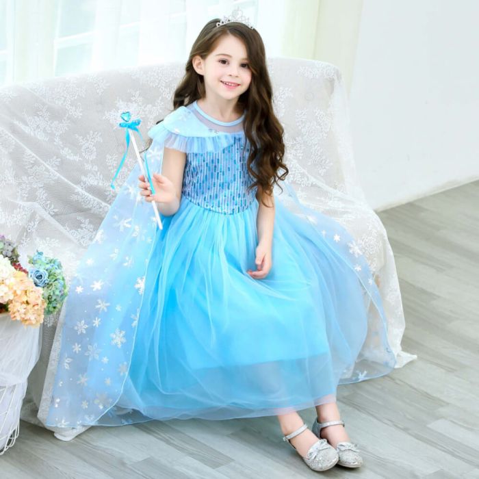 - Princess Elsa Character-Inspired Costume Dress for Girls