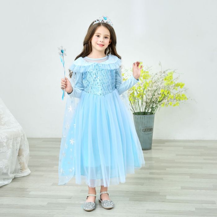 Let your little girl step into a world of magic with this stunning Elsa-inspired princess costume dress! Designed with elegant details that capture the charm of the beloved Snow Queen, this dress is made from high-quality, soft fabrics that ensure all-day comfort. Perfect for costume parties, birthdays, or imaginative play at home. Make every moment a royal adventure your child will never forget!