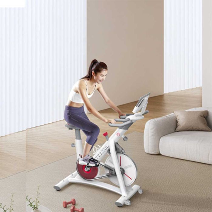 This exercise bike is engineered for a superior smart home workout. It provides smooth, stable performance via a belt drive system and a 6.5 kg flywheel, simulating outdoor cycling. It connects using Bluetooth technology to synchronize with your favorite training apps. Its robust frame supports up to 120 kg.