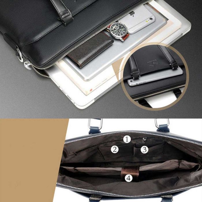 This PU leather business handbag is crafted for professionals who value elegance and practicality, made of durable material resistant to scratches, it features multiple compartments for documents, laptop, and daily essentials, with detachable shoulder strap and strong top handles, the sleek design ensures lasting quality and a refined business look