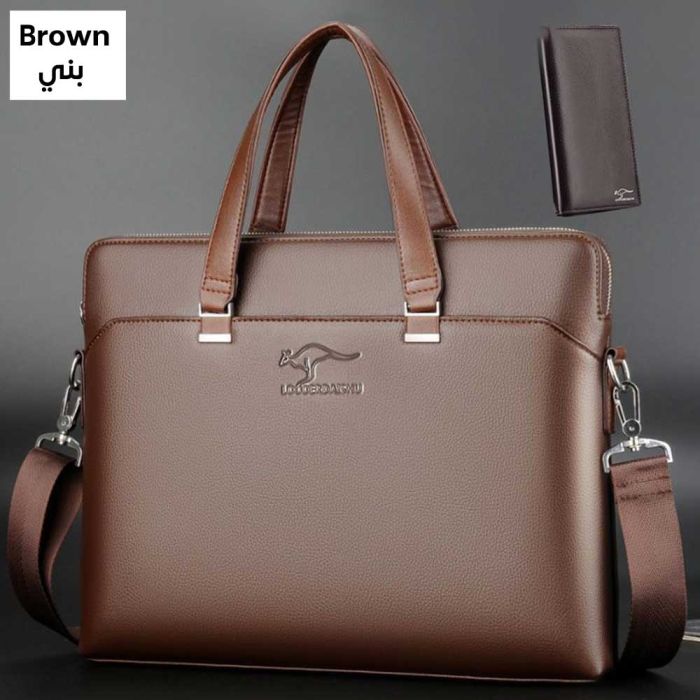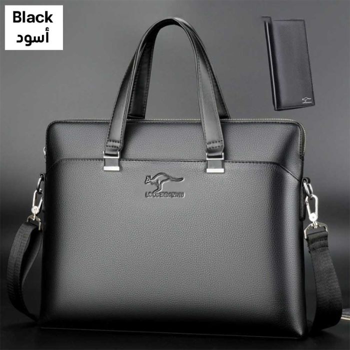 - PU Leather Business Handbag with Shoulder Strap + Wallet - 38 × 28 × 4 cm