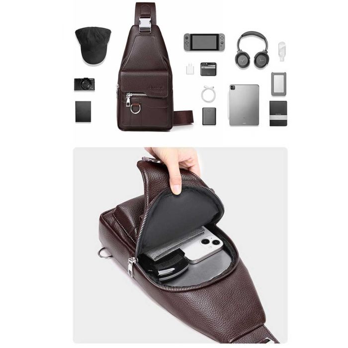This PU leather crossbody bag is designed to combine elegance and practicality, made of durable water-resistant material, it offers organized compartments with front and back zipper pockets for phone, wallet, and essentials, the adjustable strap allows flexible wearing on the shoulder or crossbody, while the refined finish ensures lasting quality with daily use
