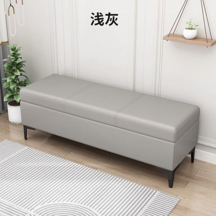 - PU Leather Long Stool with Internal Storage and Wooden Frame