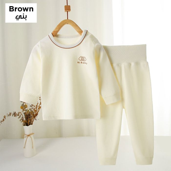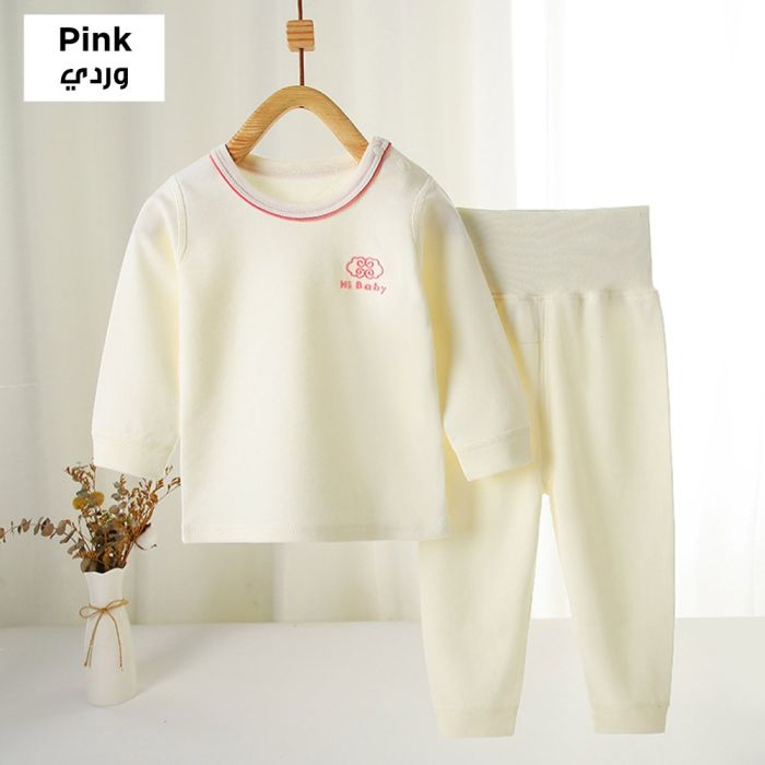 A soft, pure cotton pajama set designed to protect your baby's tummy and provide warmth and comfort during the spring, fall, and winter seasons.Today's Deal is Pure Cotton Baby Round Neck Pajama Set with High Waist