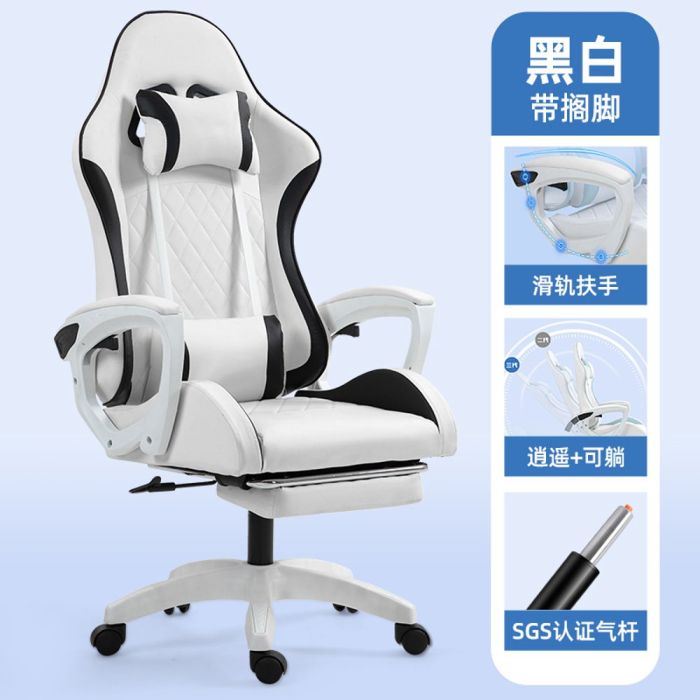 This gaming chair is made from PVC leather, giving you high comfort with supportive neck and back cushions, a comfortable footrest for relaxation, a wide-angle reclining back with position locking, and a padded seat that keeps you stable and comfortable for long sessions