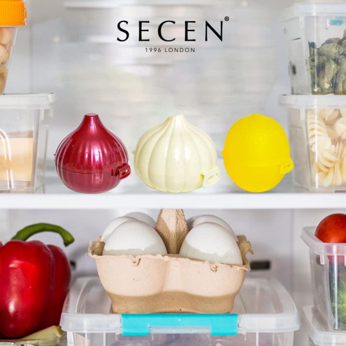 Keep fruits and vegetables fresh in a smart and organized way with this practical 3-piece silicone storage set. It includes onion, lemon, and garlic containers, providing you with an ideal solution for storing leftovers and preserving their fresh flavor for longer. It's made from high-quality materials and is BPA-free to ensure safe and healthy use in your everyday kitchen.