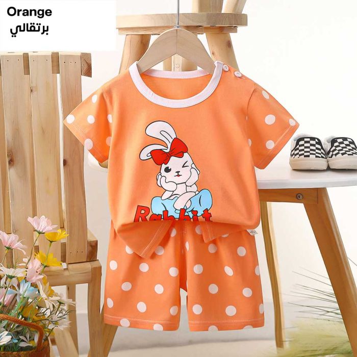 - Rabbit Pure Cotton Summer T-shirt and Shorts Set - 2-3 Years - Orange
