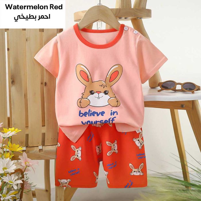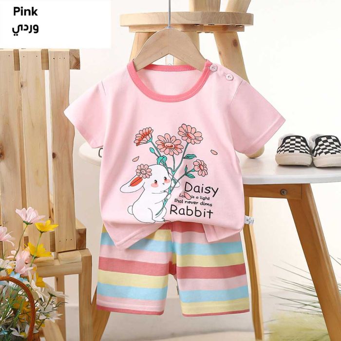 A stylish and comfortable two-piece summer set for children, consisting of a short-sleeved T-shirt and shorts. Made from pure cotton for softness, lightness, and perfect for hot weather. It features a modern, simple design with a distinctive print that adds a charming touch to your child's look. It's perfect for everyday wear at home or on summer outings.Today's Deal is Rabbit Pure Cotton Summer T-shirt and Shorts Set