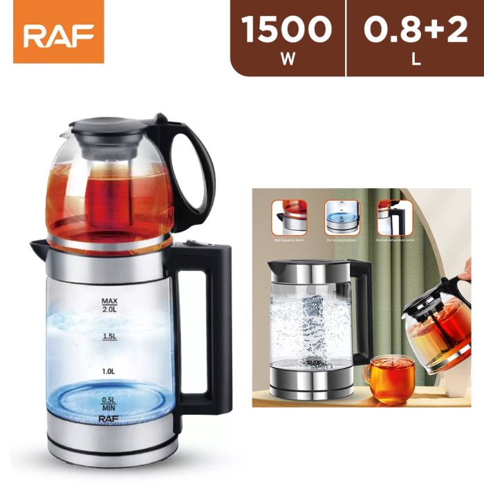 - 1500W Double Glass Electric Kettle 2L with 0.8L Jug by RAF