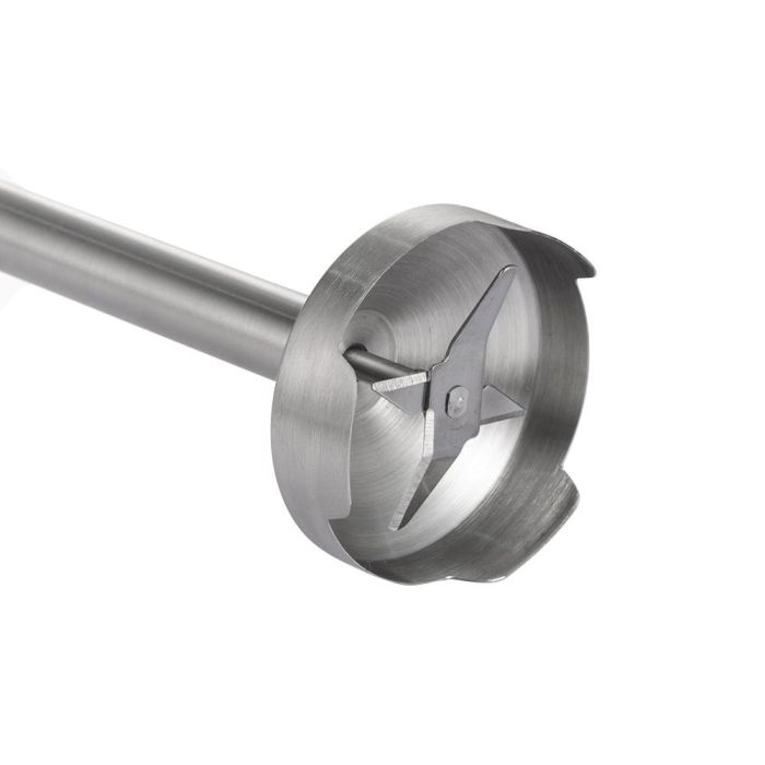 The RAF hand blender is designed for everyday kitchen use. It operates at 400 watts with high rotation speed for quick and smooth results. Equipped with 4 stainless steel blades for efficient blending and grinding, it features a convenient push-button design for easy control. Suitable for blending and mixing various ingredients at home.