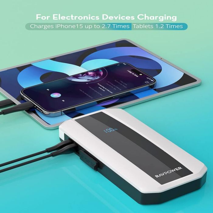 - 11000mAh Power Bank: USB-C input, dual USB-A outputs