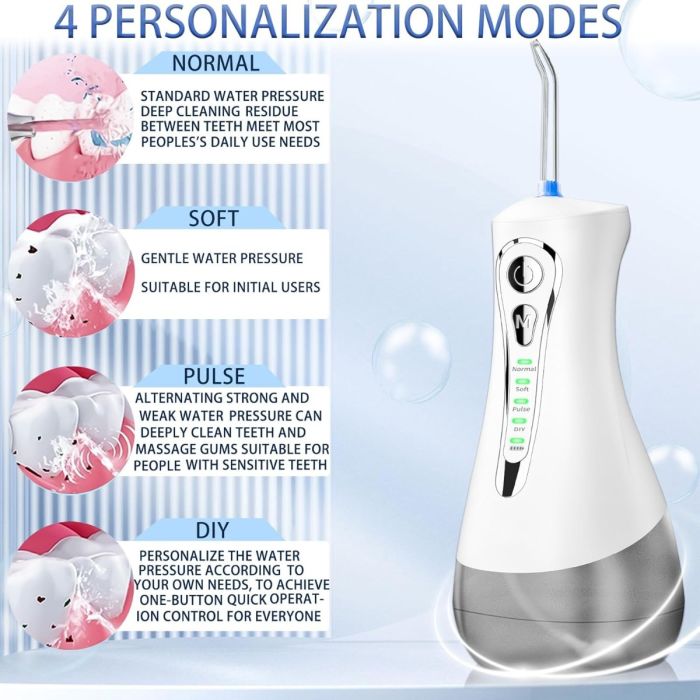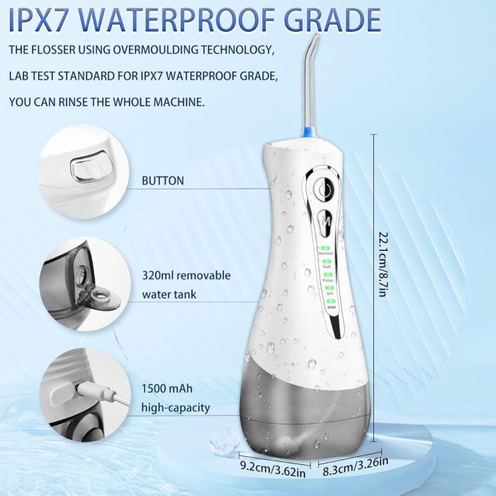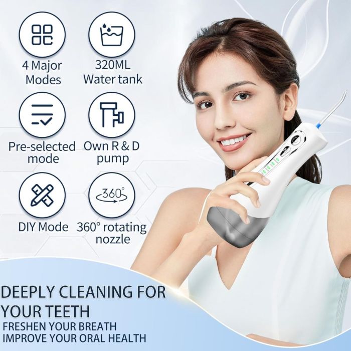 - Rechargeable 320ml Oral Irrigator Water Flosser with 7 Jet Tips