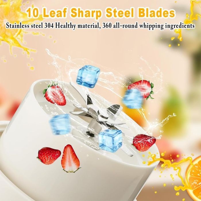 Enjoy your healthy drinks wherever you go! This portable blender comes equipped with a powerful motor and advanced blades that easily crush ice, frozen fruits, and nuts. Its high-capacity 3000mAh battery is enough to prepare 10–15 cups on a single charge. It's made from high-quality food-grade materials, including 304 stainless steel blades and a durable ABS base, with a safe silicone straw.