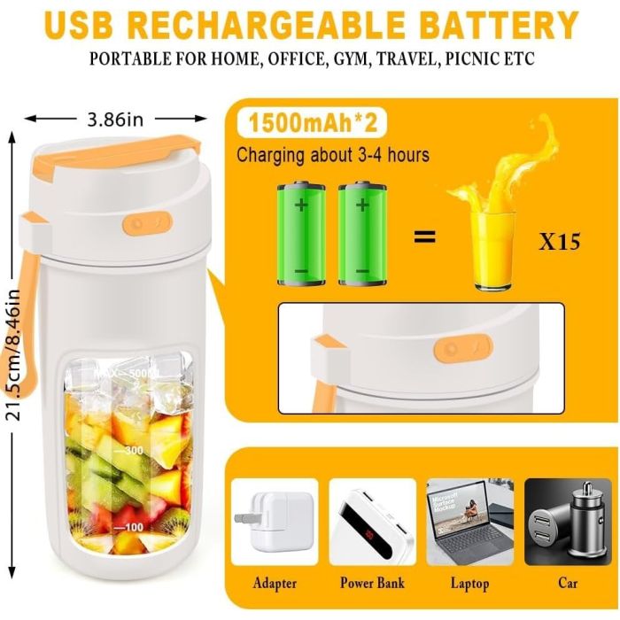 - Rechargeable 500ml Personal Blender for Shakes and Smoothies