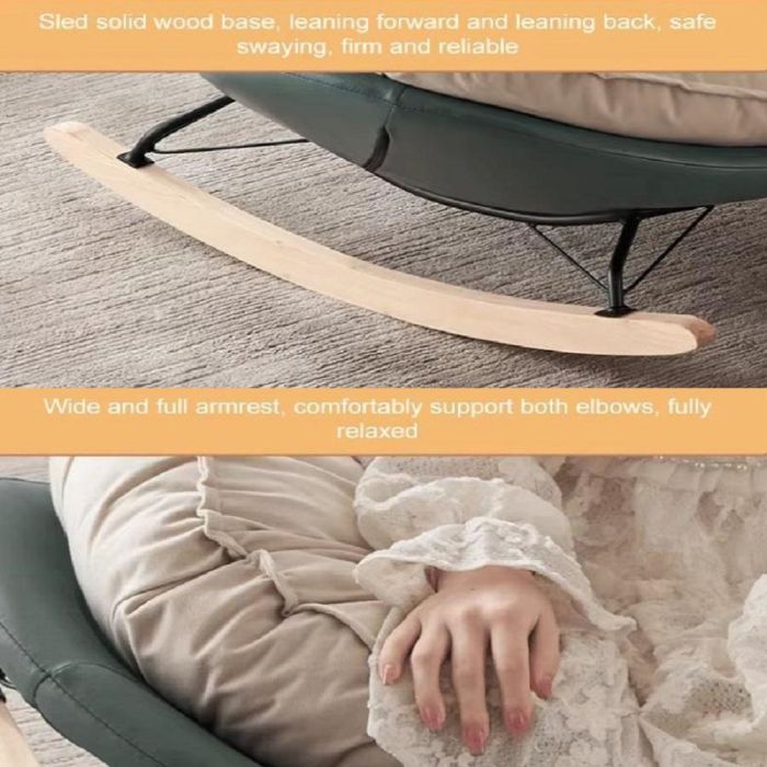 The smooth rocking mechanism helps to relax and soothe or even enjoy reading. The sturdy metal frame with a solid wood base with Maximum weight up to 200 kg ensures high stability and durability for everyday use