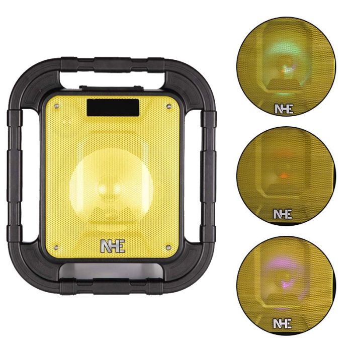 Enjoy high-quality sound and vibrant LED lights with the NHE portable Bluetooth speaker. Perfect for parties, camping, or relaxing at home. Stylish design, long-lasting battery, and easy to set up