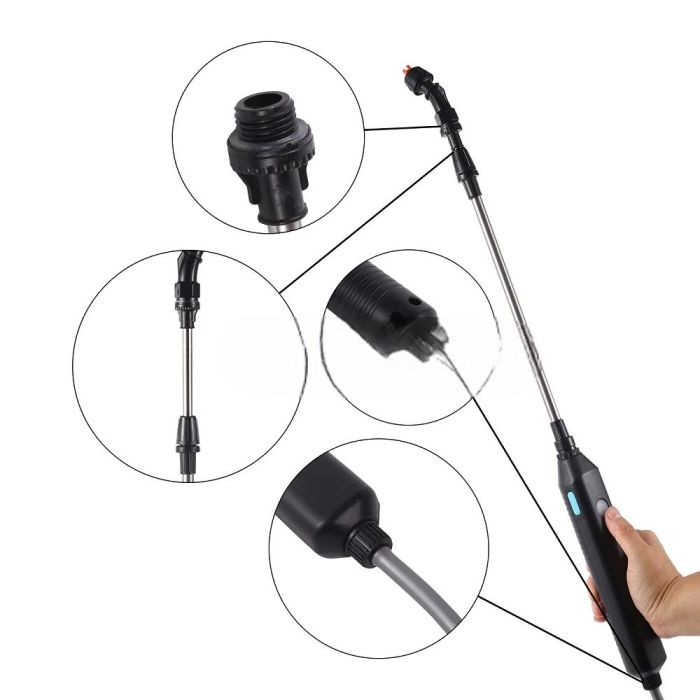 This Rechargeable Portable Electric Sprayer made of high quality materials, delivers powerful multi-mode spraying with one-button operation, lightweight design with telescopic wand for hard-to-reach areas, flexible 2 meter hose for extended reach, ideal for watering plants and daily cleaning