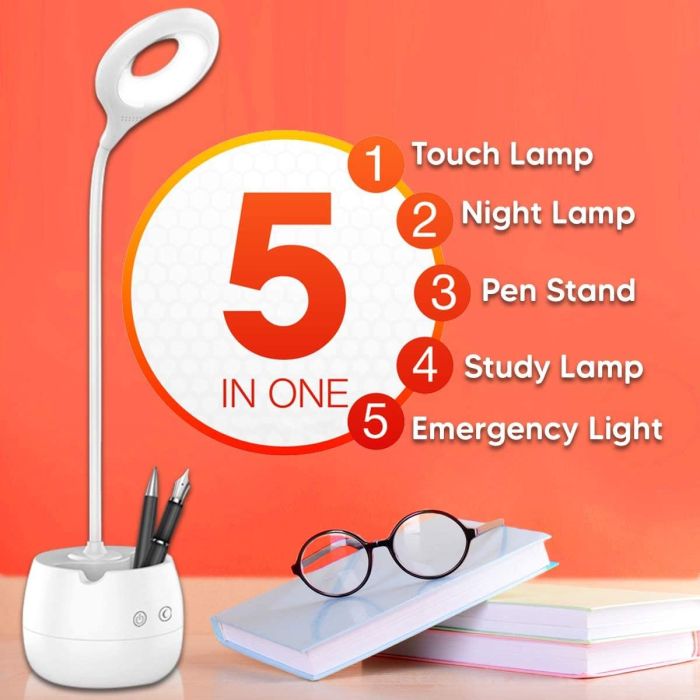 - Rechargeable Study LED Desk Table Lamp with Pen Holder USB Charging Touch Control