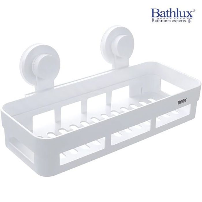 This rectangular bathroom shelf gives your shower and daily care essentials an elegant organized look, with a wall design fixed by adhesive suction cups without drilling, and a perforated base that helps drain water for a practical and tidy use in the bathroom or kitchen