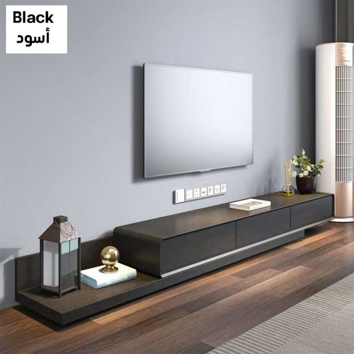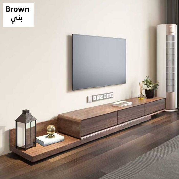 Organize and elevate your living space with a retractable wooden TV cabinet, carefully crafted to offer flexible Width adjustment and neat organization, a smart design that adapts to different spaces and adds a modern elegant touch to your home