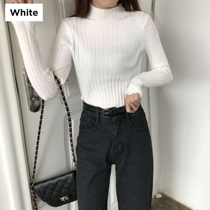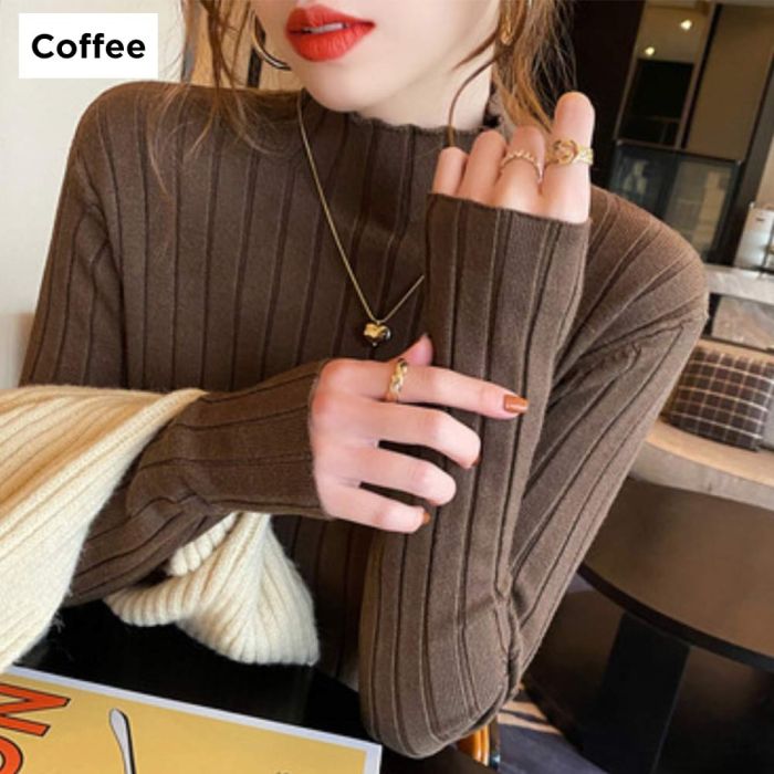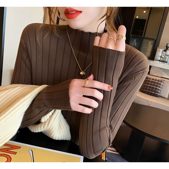 - Ribbed Winter T-shirt With Half High Neck For Women