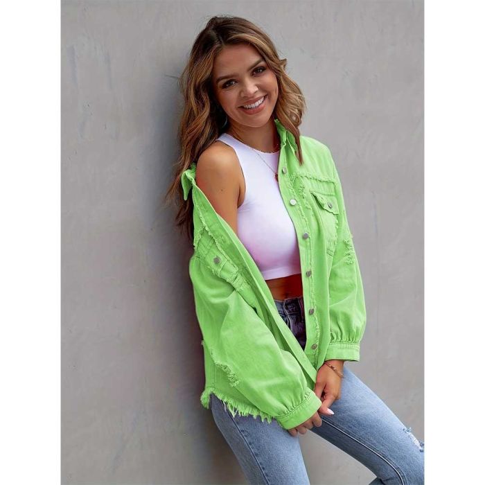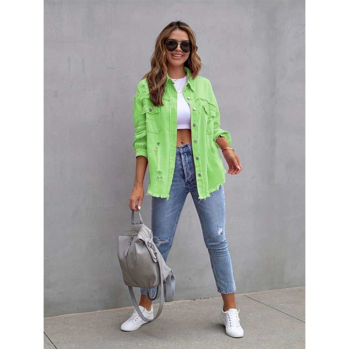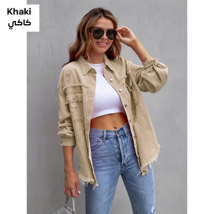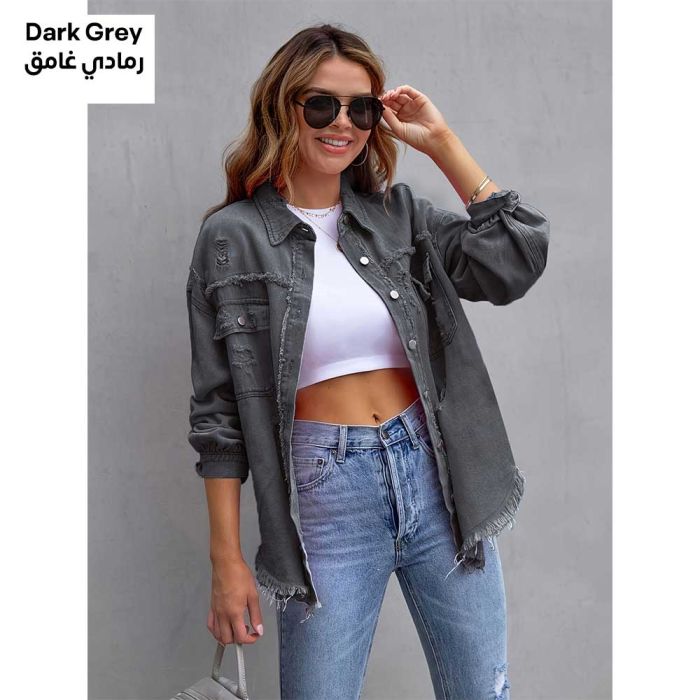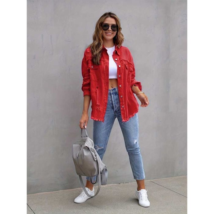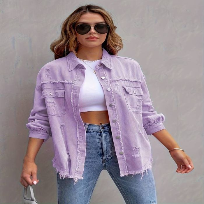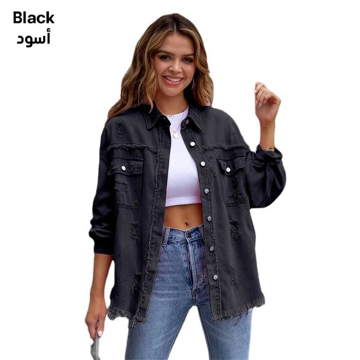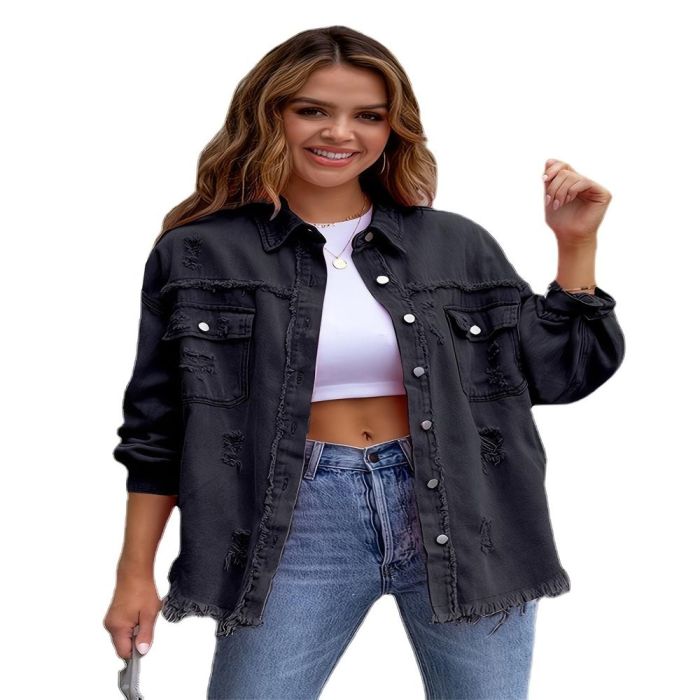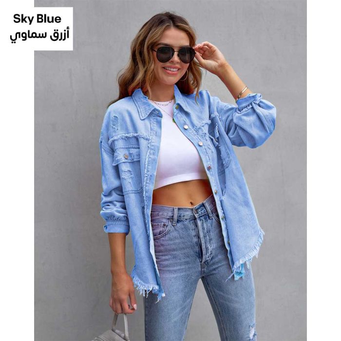 - Ripped Long Denim Jacket for Women