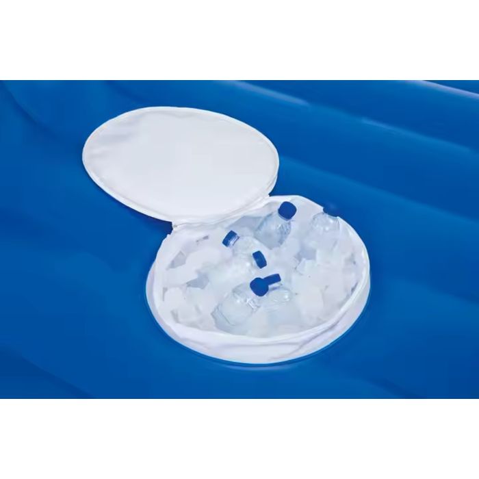 - Features: Built-in cooler, sun shade canopy, sound box, swim-up balance ring