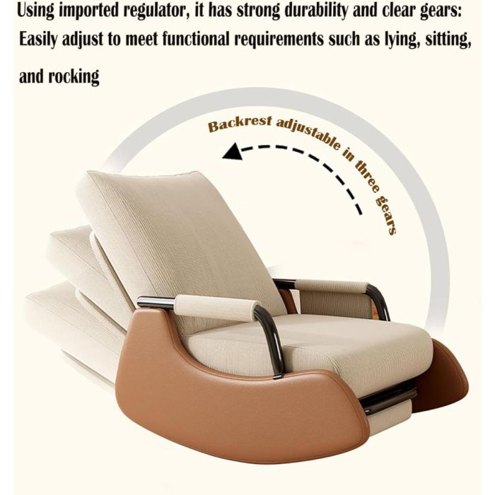 - Adjustable Rocking Chair with 3 reclining positions from 105 to 165 degrees