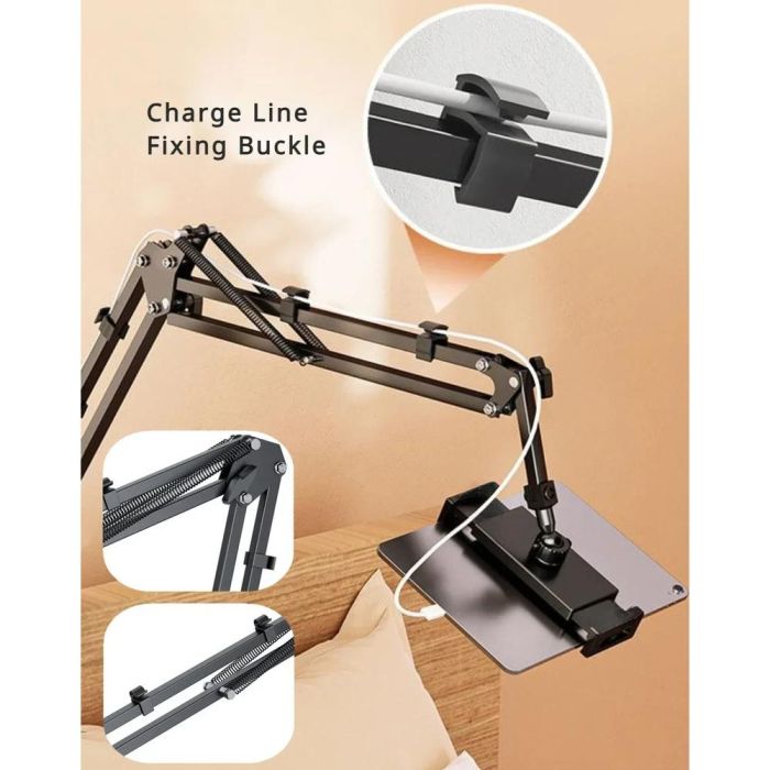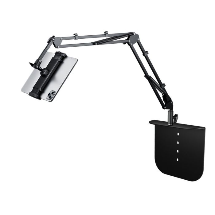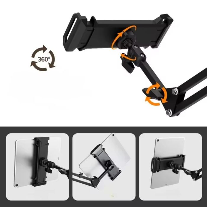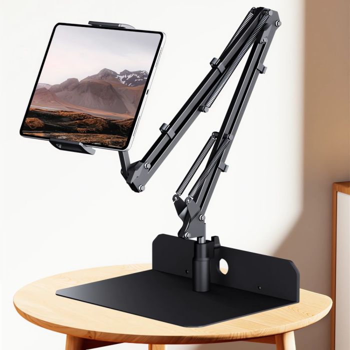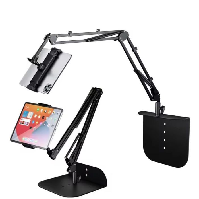 - Rollable Tablet Clamp Stand with Hinged Arm and Metal Base